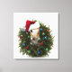 Shiba Inu Hund mit Weihnachtsmannmütze sitzend Leinwanddruck