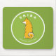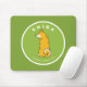 Mousepad mit einer Illustration von einem Shiba, sitzend nach einem Hintergrund des gelblichen Grüns.