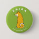Runder Knopf mit einer Illustration von einem Shiba, sitzend nach einem Hintergrund des gelblichen Grüns.