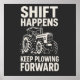 When life gets tough .... SHIFT HAPPENS! This bold tractor illustration paired with the motivational phrase "Keep Plowing Forward" is perfect for farmers, tractor lovers and anyone who believes in pushing through challenges.
