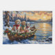 Bring happy, lion-dog charm to your holiday season with this adorable Shih Tzu Christmas design! This magical scene features three cute, affectionate Shih Tzus with their beautiful long coats sitting contentedly in a cozy wooden boat, gently floating on a serene snowy lake at sunset. The boat is beautifully adorned with glowing Christmas string lights and fragrant pine garlands, while the dogs wear festive scarves. They are surrounded by colorful wrapped presents and cheerful holly branches. Soft snowflakes gently fall, and the shimmering reflection of the lights on the water creates a truly magical winter holiday atmosphere. This design is a perfect Christmas gift for any Shih Tzu owner, dog lover, or admirer of festive and beloved companion dog art, capturing the serene joy of the season.