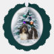 Schöne Urlaubskunst mit einem eleganten schicken Tzu, hübsch vor einem Waldgebiet dekoriert Weihnachtsbaum. Großartige Geschenke für Shih tzu Liebhaber. Weihnachtskarten, Ziergegenstände, Bekleidung und vieles mehr.