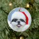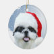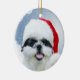 Schwarz-Weiß Shih Tzu in einer Weihnachtsmannmütze und ein Winterhund liebt Keramik Weihnachtsschmuck