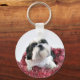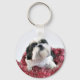 Schwarz-Weiß Shih Tzu in roter Garland Weihnachts-Foto Schlüsselanhänger