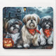 Entfesseln Sie den unheimlichen Geist mit diesem unheimlichen Halloween-Design, das eine Hundepackung unter einem dunklen, mondbeleuchteten Himmel bietet, umgeben von fliegenden Fledermäusen und glühenden Kürbissen. Ideal für diejenigen, die mit ihren wütenden Freunden eine Touch voller Furcht Liebe haben!