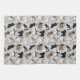 Niedliche Shih Tzu Hunde mit schwarzen, weißen, grauen, goldenen und maskierten Fellfarben mit Pfotenabzügen und Hundeknochenmuster.
