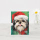 Buntes und fröhliches Weihnachtsdesign mit einem schiitischen Tzu mit einer Weihnachtsmannmütze.