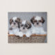 Drei Shih Tzu Welpen auf grauem Hintergrund