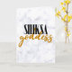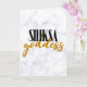Eine weitere lustige Grußkarte von JessicaAmber! Dieses typografische Design ist sowohl glamourös als auch humorvoll mit dem Slogan 'Shiksa Goddess'. Perfekt für die gentile Frau in Ihrem Leben. Die goldfarbene und schwarze Schrift in Schriftart im Stil der 90er Jahre auf weißem Marmorboden. ✡ Für mehr Spaß jüdische Slogans, Karo aus meinem Geschäft Zazzle.com/JessicaAmberArtist 🔹 Für benutzerdefinierte Bestellungen, schreiben Sie mir auf Zazzle