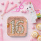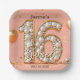 This paper plate features a chic blush pink background, setting a sophisticated tone. A magnificent "16" dominates the center, filled with lustrous white pearls and outlined in gleaming gold, creating a truly luxurious focal point. The word "Sweet" elegantly overlays the number in a delicate script. Golden confetti and whimsical balloons are scattered across the plate, adding a festive sparkle. Both the name and the date are fully customizable, allowing you to personalize this exquisite design for a memorable Sweet Sixteen celebration.