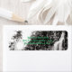 Schwarz-Weiß-Foto eines Wasserfalls in einem Steinwaschbecken, mit Bäumen an der Berglinie, und die Sonne scheint im Wappen der Landschaft. Image Copyright ©2019 Kimberly J Tilley. www.zazzle.com/developingnature