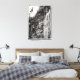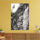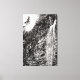 Schwarz-Weiß-Foto eines Wasserfalls in einem Steinwaschbecken, mit Bäumen an der Berglinie, und die Sonne scheint im Wappen der Landschaft. Image Copyright ©2019 Kimberly J Tilley. www.zazzle.com/developingnature