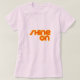 Weißer T - Shirt mit dem Satz "Shine on" in orange und gelb, mit einem kleinen Sonnendeck im Buchstaben "o". Glauben Sie an sich und leben Sie Ihr volles Potenzial. Shine on.
