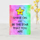Jeder würde Liebe haben, diese inspirierende, farbenfrohe Regenbogen-Grußkarte zu erhalten! Shine on und sei der Stern, dass du bist! Die Innenseite der Karte ist leer.