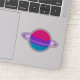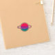 Digitale Kunst eines glänzenden Planeten in den Farben der androgyne Fahne umgeben von Ringen wie Saturn im Weltraum.