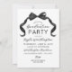 Hübsche Abschluss Einladung und Ankündigung in einem personalisierten mit einem bogenförmigen Foto mit einem hübschen Band mit einem schwarzen Bogen verziert. Doppelseitige Abschluss-Einladung mit weißem Hintergrund und hübschen schwarzen Bögen. Girly 2 in 1 Abschluss Ankündigung und Einladung personalisiert mit Foto und dem Namen des Absolventen in einem schönen schwarzen Skript. Schwarzes Band und bugthemed Abschluss Einladung und Ankündigung in einem.