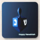Ein modernistisches, metallisch blaues Dreieck vor einem dunklen, nächtlichen Hintergrund. Zwei der hebräischen Briefe, die auf einem dreifachen gefunden wurden, nun Nonne und glänzen, leuchten hell. Text liest "Happy Hanukkah" auch in leuchtend blau und weiß.