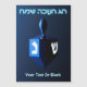 Ein modernistisches, metallisches, blaues Dreieck vor einem dunklen, nächtlichen Hintergrund. Zwei der hebräischen Briefe, die auf einem dreifachen gefunden wurden, nun Nonne und glänzen, leuchten hell. Auch der hebräische Text "Chag Chanukkah Sameach" (Happy Hanukkah) erscheint in blau und weiß. Fügen Sie Ihren eigenen zusätzlichen Text hinzu.