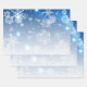 Schönes winterthematisches Verpackungsblatt-Design mit kristallklaren Schneeflocken und Glitzern auf glänzend blauem Hintergrund.