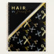 Stilvolles personalisiertes Planerdesign für Haarstylisten mit Imitaten mit goldenen und silbernen Scheren auf schwarzem Hintergrund. Der Text ist vollständig anpassbar.