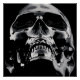 Dieses atemberaubende Kunstwerk besticht durch einen hochgradig detailgetreu glänzenden Metallschädel, der perfekt für Fans von dunkler, moderner und gotischer Ästhetik geeignet ist.