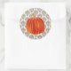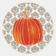 Shiny Orange Autumn Pumpkin Burlap White Damask Runder Aufkleber