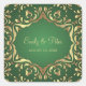 Shiny Royal Imitats Gold Ornamente auf Smaragdgrün Quadratischer Aufkleber