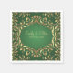 Elegantes personalisiertes Hochzeitsnapkin-Design mit glänzenden Imitaten goldenen Ornamenten auf einem smaragdgrünen Hintergrund und einem leeren Bereich für Ihren Text.