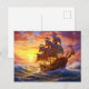 Ship in Golden Sunset Storm Fantasy Painting Postkarte