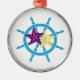 Ship wheel with a yellow and purple starfish in the center. Cute nautical theme ornament