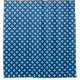Traditionelles japanisches Shippo, oder "sieben Schätze" gemusterter Duschvorhang von ineinander greifenden Kreisen mit einem Motiv der zentralen Blume - hellblaue und weiße Blume mit indigoischem und denim blauen gemusterten Hintergrund