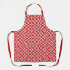 Schürze in einem traditionellen japanischen Shippo oder "sieben Schätze"-Muster ineinander greifender Kreise mit einem Motiv der zentralen Blume - tiefes chinesisches Rot auf weißem Hintergrund