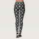 Leggings in einem traditionellen japanischen Shippo oder "sieben Schätze"-Muster ineinandergreifender Kreise mit einem Motiv der zentralen Blume - Blume in Grautönen / Grautönen mit einem schwarz-weiß gemusterten Hintergrund