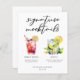 Diese elegante Signatur-Mocktails-Menüvorlage enthält eine eigene schwarze Typografie über 2 alkoholfreie Getränke und deren Zutaten für Ihre Hochzeitsfeier. Ein niedlicher Shirley Temple und Jungfrau Mojito zeichnend fügen einen coolen Flair zu Ihrem Bar Menü. Füllen Sie bitte die Namen des Paares und das Datum für seinen Empfang aus.