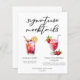 Dieses elegante, charakteristische Mocktails-Menü-Blatt Papier zeigt eine eigene schwarze Typografie über 2 alkoholfreie Getränke und deren Zutaten für Ihre Hochzeit Bar. Ein niedlicher Shirley Temple und Jungfrau Strawberry Daiquiri zeichnend fügen einen coolen Flair zu Ihrem Bar Menü. Füllen Sie bitte die Namen des Paares und das Datum für seinen Empfang aus.
