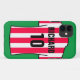 Erstellen Sie einen Handy-Case mit Ihrer Wahl des Football-Shirts mit einem zusätzlichen Namen und einer zusätzlichen Nummer. Shirt in Rot und Weiß Streifen.