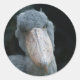 Eine Vorderschabe steht deutlich vor einem dunklen Hintergrund. Sein enormer Schnabel ist ein auffallendes Merkmal, das Aufmerksamkeit durch seine unverwechselbare Form und Größe erregt. Der Vogel strahlt eine majestätische Atmosphäre aus, während er nach vorn blickt und ein faszinierendes Bild schafft.