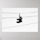 Ein schwarz-weißes Foto von Designertrainern/Sneakern, die über einem Telefonkabel hängen.