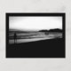 A black and white photograph of the sun setting on the beach at Kamakura, Japan.