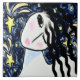 Meine funky abstrakte Digitalmalerei einer Frau mit Sternchen ist auf Keramik-Fliesen gedruckt