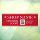 SHOP NAME, Opening bald, QR Code, Red & White Fensteraufkleber