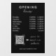 The Shop Open Timing QR Code Sleek Black Window Cling offers a clean and professional way to display store hours with quick digital access. It combines clear opening times with a scannable QR code for customer convenience.