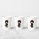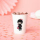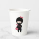 Niedliche Cartoon Ninja Mädchen in schwarz gekleidet, aber für einen rosa Bogen auf ihrer Kopfmaske. Traditionelles japanisches Katana-Schwert kann man an ihrem Rücken sehen, es ist auch mit rosa Handgriff. Das Mädchen hält einen rosa Warenkorb.