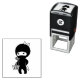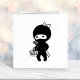 Niedliche Cartoon Ninja Mädchen in schwarz gekleidet, aber für einen kleinen Bogen auf ihrer Kopfmaske. Traditionelles japanisches Katana-Schwert kann man an ihrem Rücken festmachen. Das Mädchen hält einen Warenkorb.