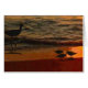 Sonnenuntergang am Strand. Vier Küstenvögel stürzen sich zwischen den Gezeiten, hinter ihnen ein heller Sonnenuntergang. Ausgerendert in Ölen durch die preisgekrönte Künstlerin Kathie Miller.