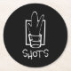 Blendet Untersetzer aus Papier ein. Schwarz mit Weißdruck.