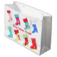 Diese Weihnachtsgeschenktasche wird bestimmt einem Schuhliebhaber gefallen, der ihren Namen personalisiert auf der Tasche hat! Passen Sie die Worte "Frohe Weihnachtsnamen" für eine andere Nachricht, wie zum Beispiel für ein Weihnachtsfest Geburtstag. Diese acht Weihnachtslieder in zwei Reihen sind ein frischer, moderner Strumpf auf der Grundlage verschiedener Frauenstiefel. Die helle und farbenfrohe Malerei umfasst einen Pfefferminzstiefel mit rotem und weißem Streifen, einen türkisfarbenen und grünen Schneeflockenschuh, einen gelben High-Heefel mit roter Poinsettia und Manschette, einen pinkfarbenen Fuchsia-Rosa- und Türkisblau, einen rot-türkisfarbenen Schuhschuh, einen blau-weißen Schneeflocken und einen beliebten Flachpelz in Rot mit gelben Sternen und einem roten und grünen Western Stiefel. Diese originale Kunst wurde von Phyllis Dobbs entworfen und ist vollständig anpassbar.