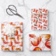 Blätter aus Packpapier mit Garnelen-Design. Weißer Hintergrund auf drei Blättern gerollten Papiers (keine Falten - lesen Sie weiter unten) mit fett bis klein Garnelen Muster. Die Farben sind orange-rot und braun. Wrap Geschenke für Partys im Sommer, um Meeresfrüchte Liebhaber zu geben, oder einfach nur anders zu sein.