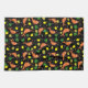Pattern with red shrimps and lemons on black background