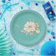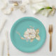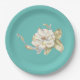 Rose Shrub (blau) auf einer Papierplatte 9" Diese schöne weiße Rose auf blauem Hintergrund wird auf Ihrem Party schön sein.